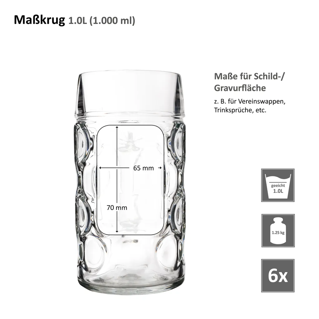 6er Set Maßkrug 1 Liter Geeicht Bierkrug Mit Henkel Bierglas Perfekt Geeignet Für Gastronomie