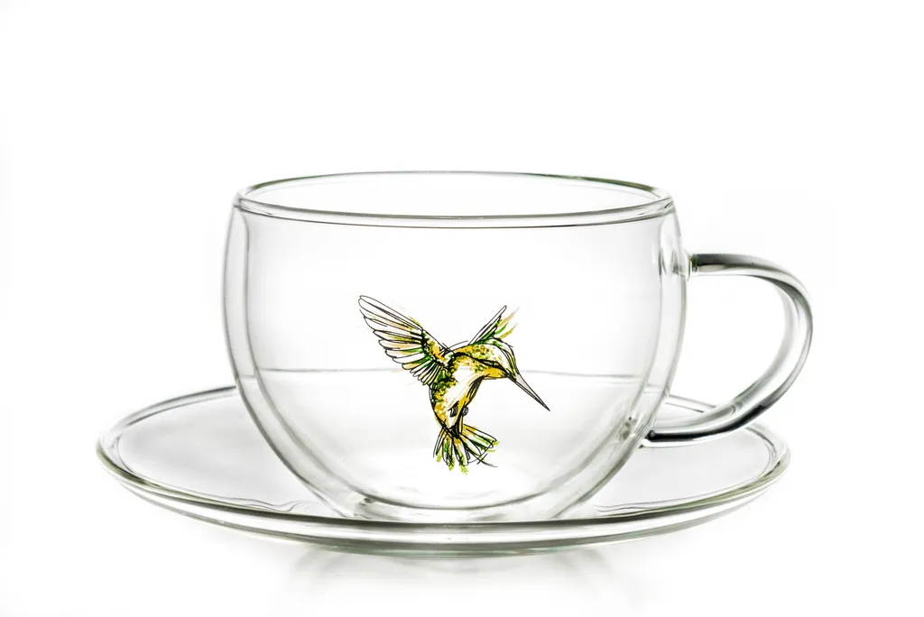 Creano 6er-Set Thermo-Tasses „Hummi“ Für Tee/Latte Macchiato, Doppelwandig, Mit Kolibri-Muster | 250ml In Exklusiver Geschenkpackung
