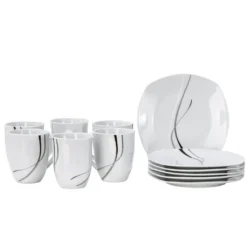 EBRO Tafelservice, 12tlg., Speiseteller + Suppenteller, Essteller, Opal-Hartglas