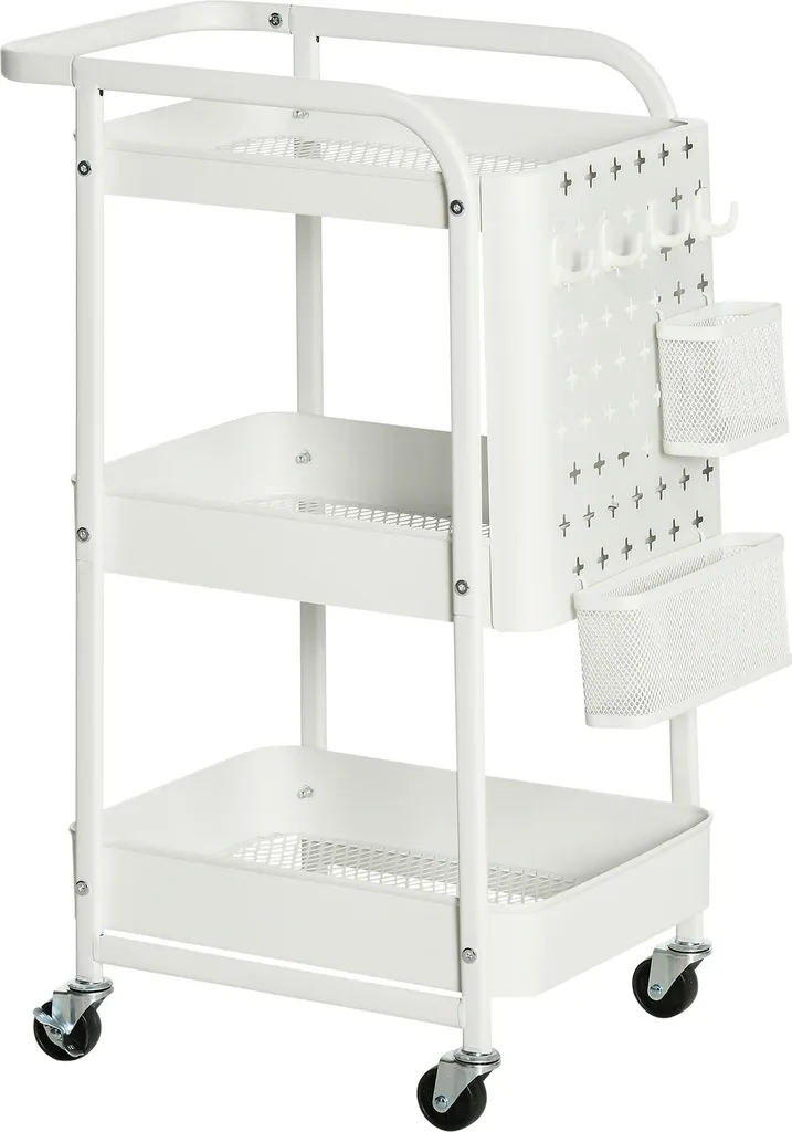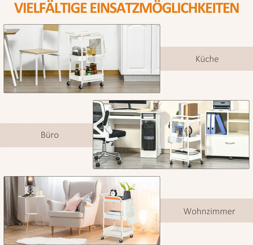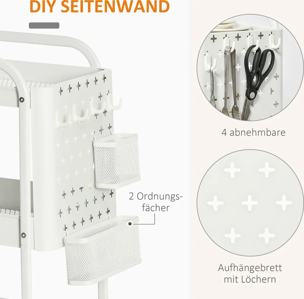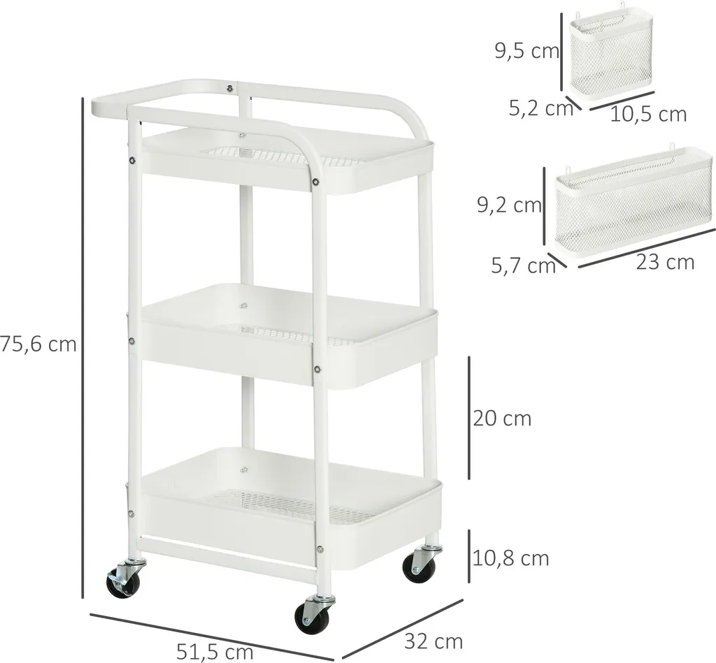 HOMCOM Rollwagen3-Etagen Küchenwagen Mit Schubladen Und Korb Für Küche Büro Schlafzimmer Wohnzimmer Stahl Weiß 51,5 X 32 X 75,6 Cm