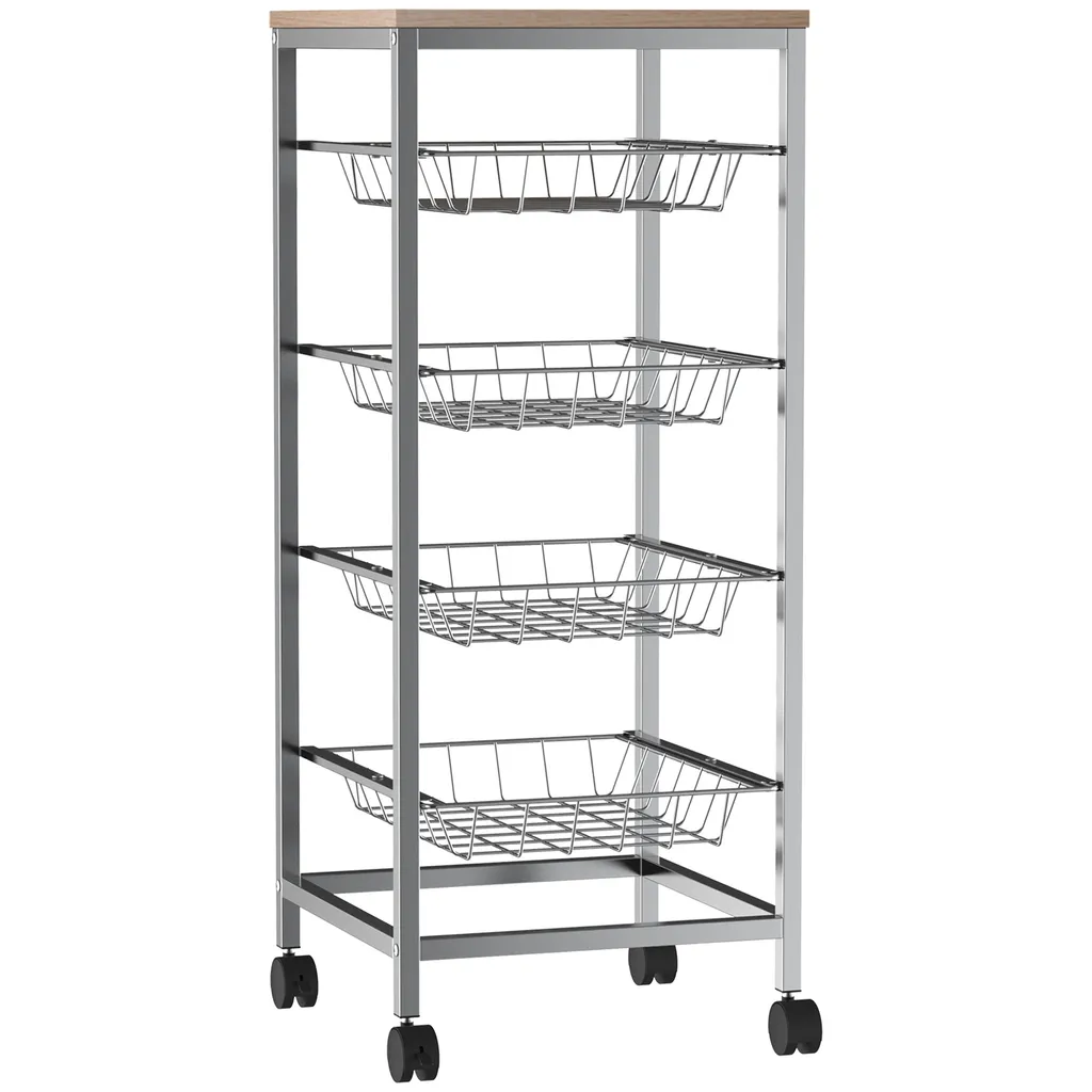 HOMCOM Servierwagen, Küchenwagen Mit Metallkörben, Küchentrolley, Beistellwagen, Silber, 36,5 X 36,5 X 89 Cm