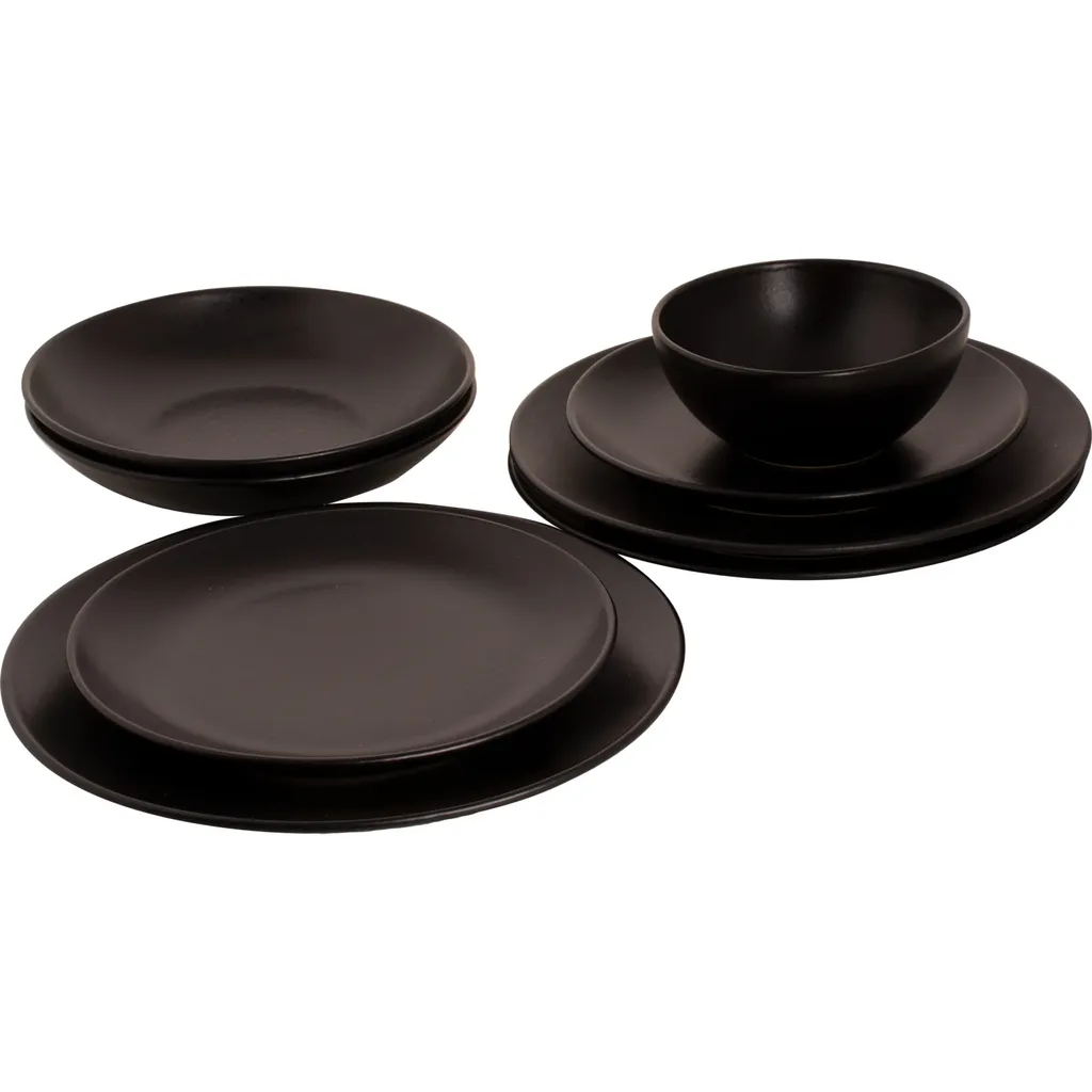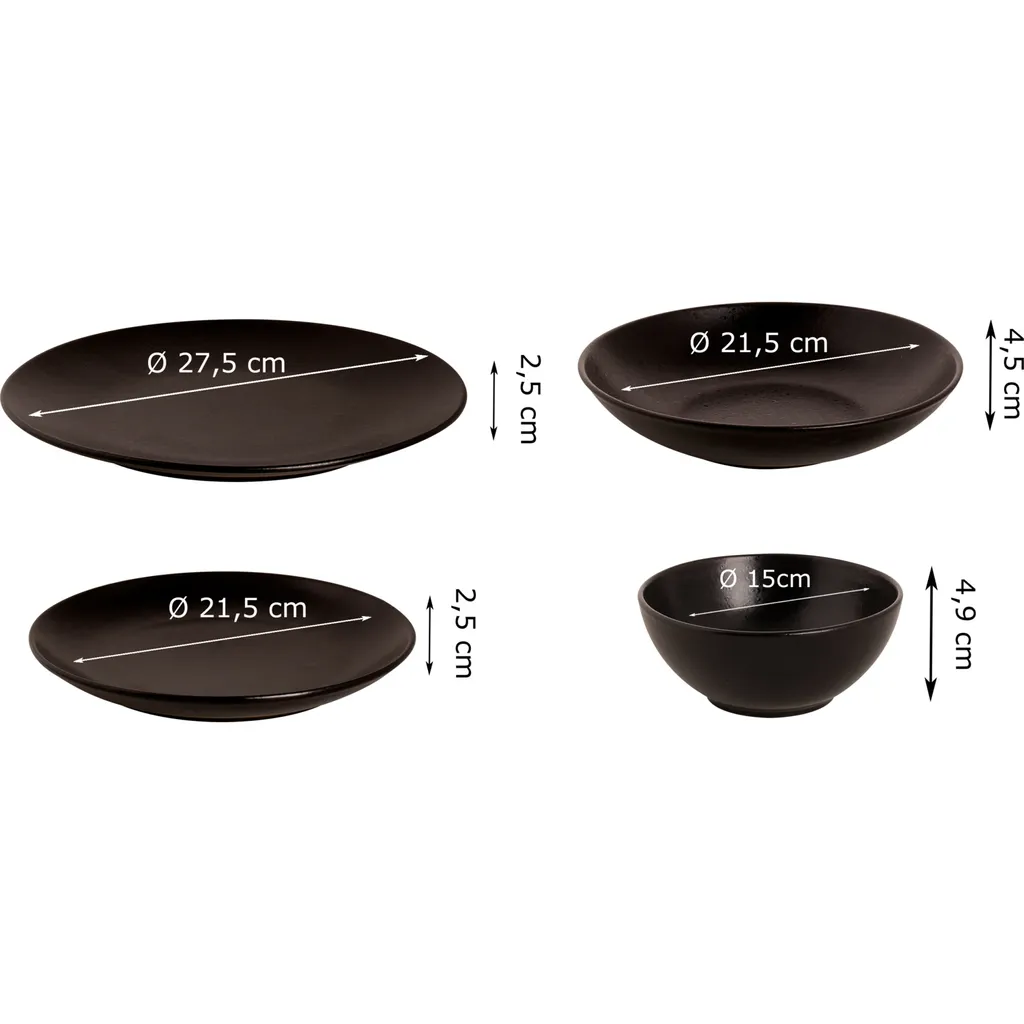 Mammoet Moon Geschirrset 6 Personen, Steingut, Bestehend Aus Tiefen Und Flachen Tellern Sowie Schalen – Je 6 Stück, Matt Schwarz, Moderne Form, Spülmaschinenfest