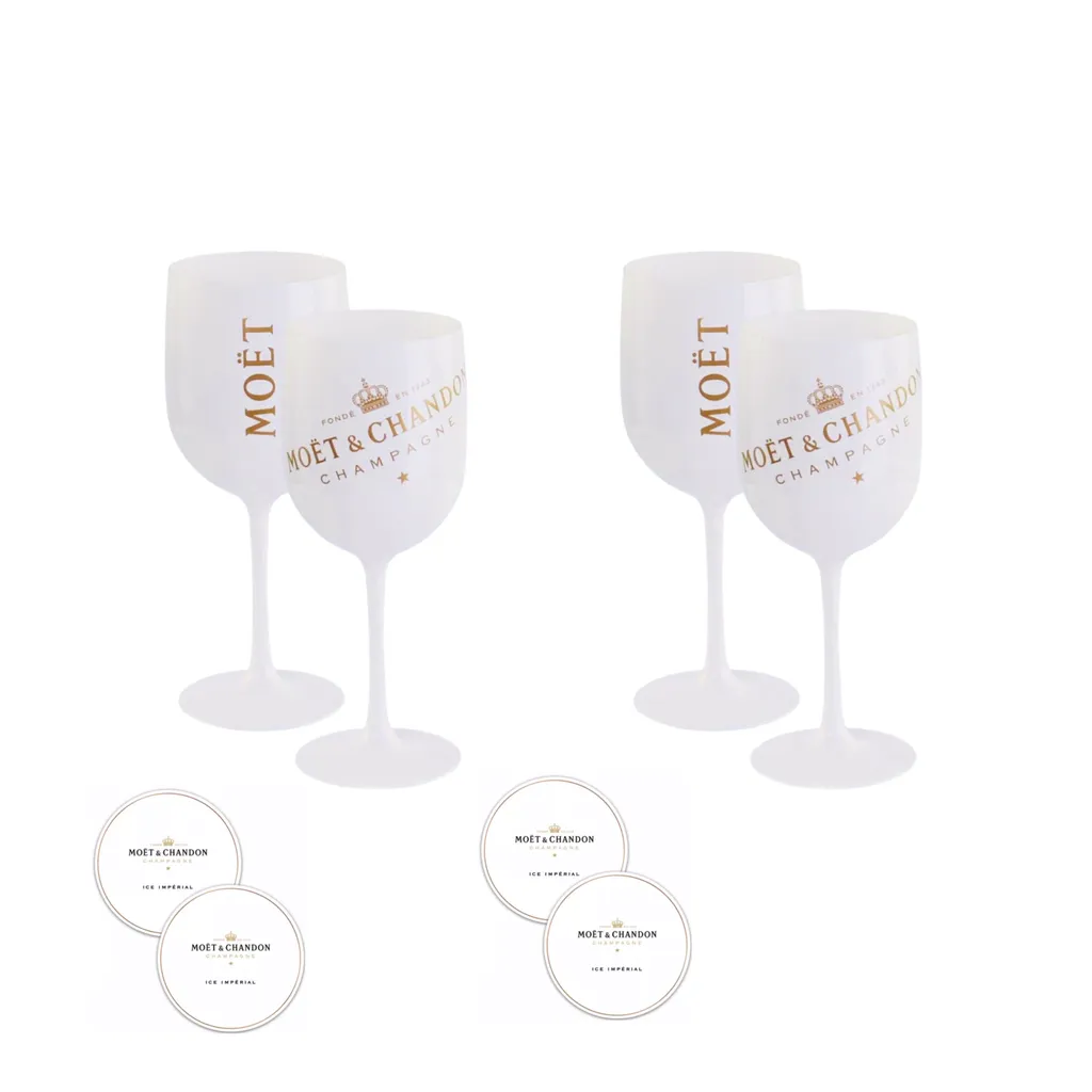 Moët & Chandon Champagnergläser ICE IMPERIAL 450ml Aus Acryl Set Mit 4 Gläsern Inkl. Untersetzer