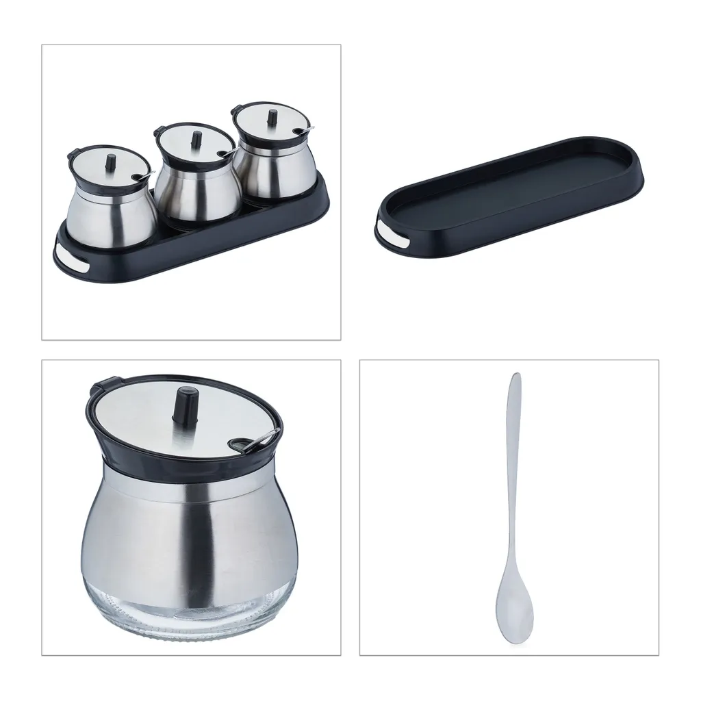 Relaxdays 3er Gewürzgläser Set Mit Tablett