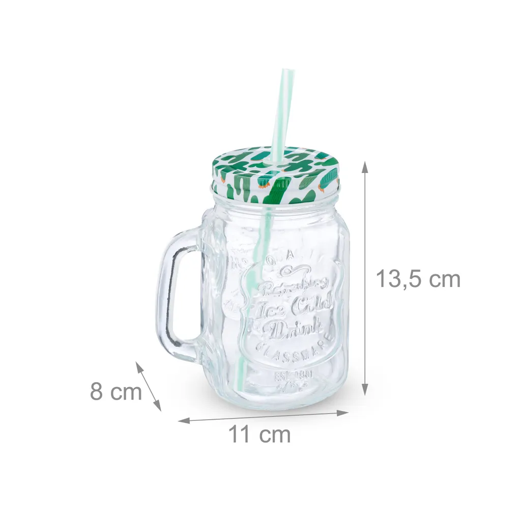 Relaxdays 8er Set Trinkgläser Mit Deckel Kaktus