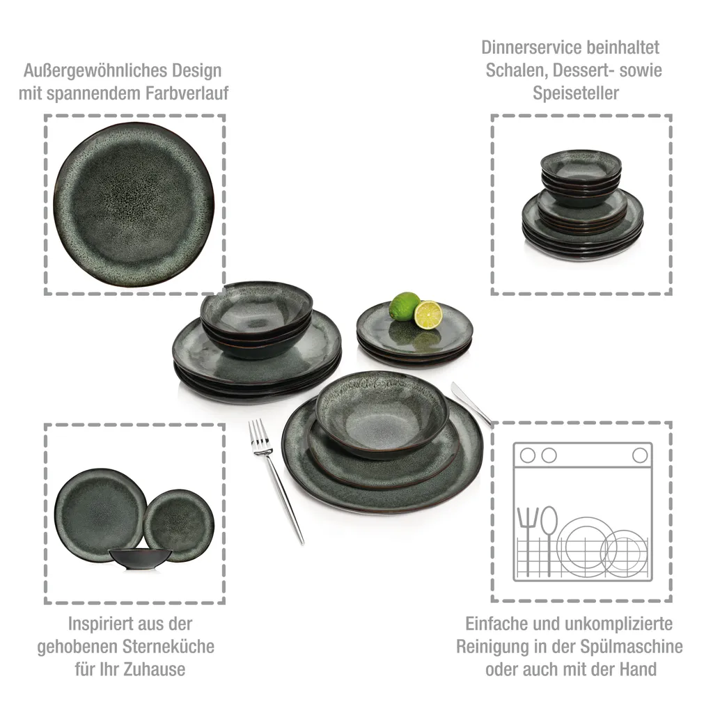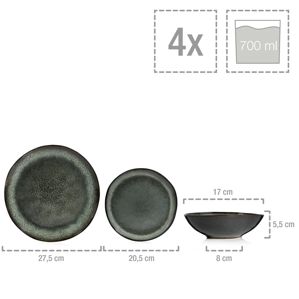 Sänger SÄNGER Steingut Geschirrset Kopenhagen, Tafelservice 12 Teilig Für 4 Personen
