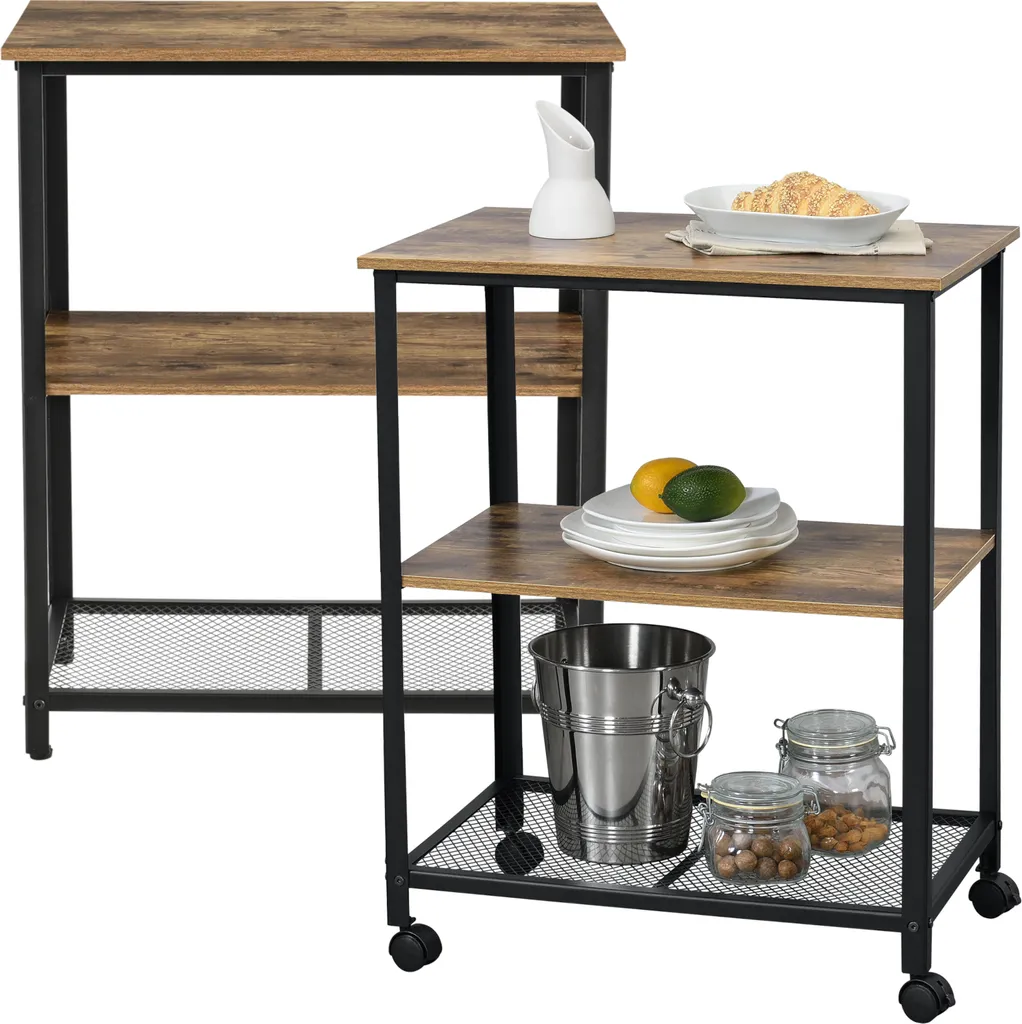 Servierwagen Barwagen Mit Ablage Beistellwagen Allzweckwagen Rollwagen Schwarz/holzfarben [en.casa]