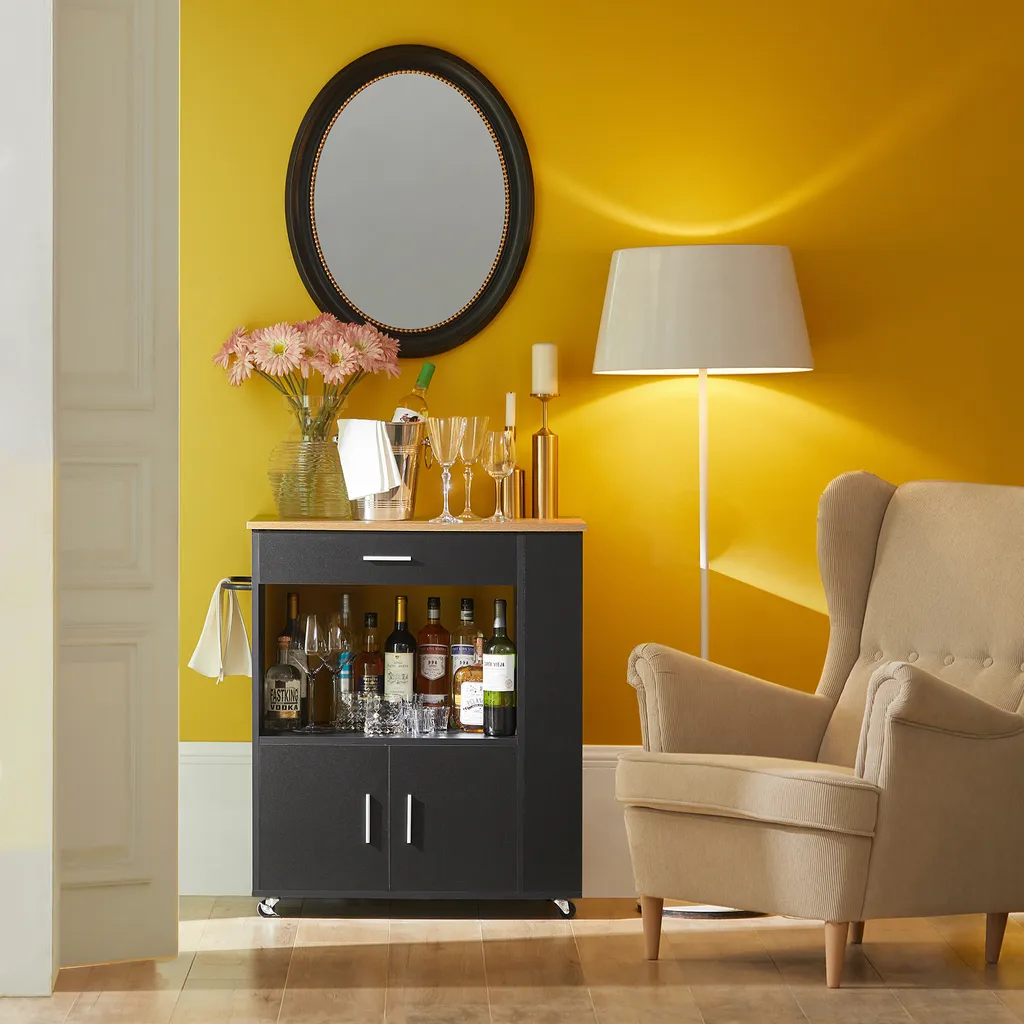 SoBuy FKW113-SCH Servierwagen Küchenwagen Kücheninsel Küchenschrank Rollwagen Mikrowellenschrank Küchenrollwagen Schwarz BHT Ca.: 82x88x46cm