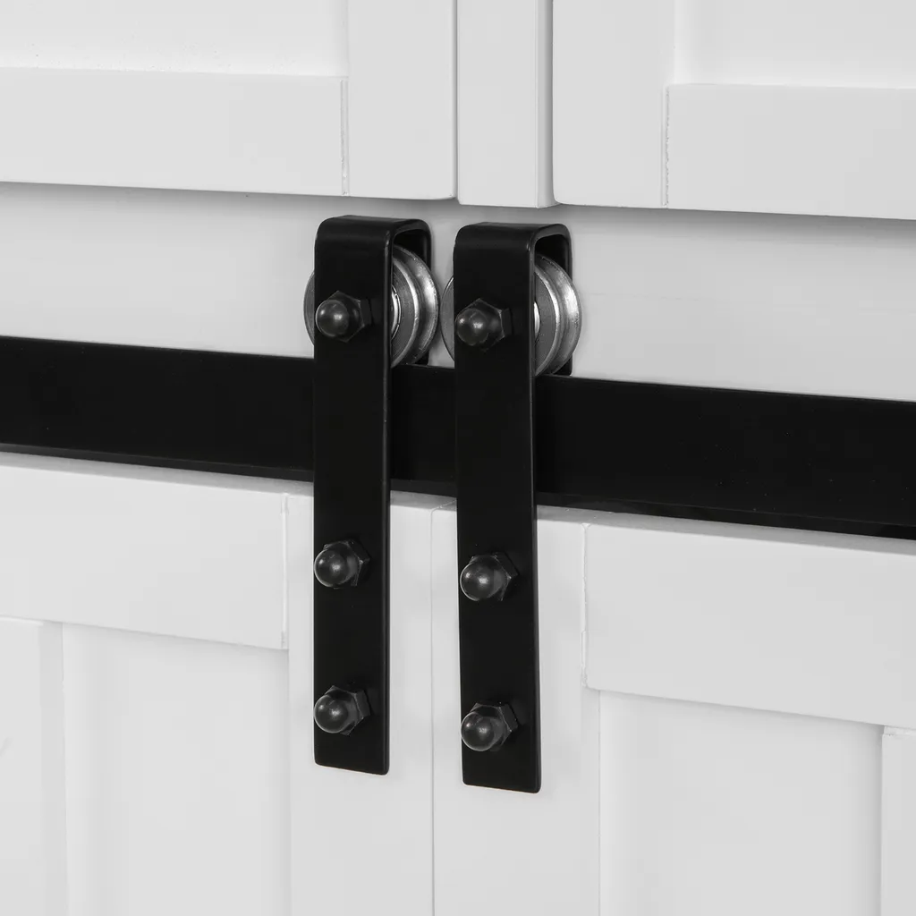 SoBuy FKW94-W Design Küchenwagen Mit Flaschenablage Küchenschrank Mit 2 Schiebetüren Und 2 Schubladen Servierwagen Mit Edelstahlplatte Sideboard Weiß