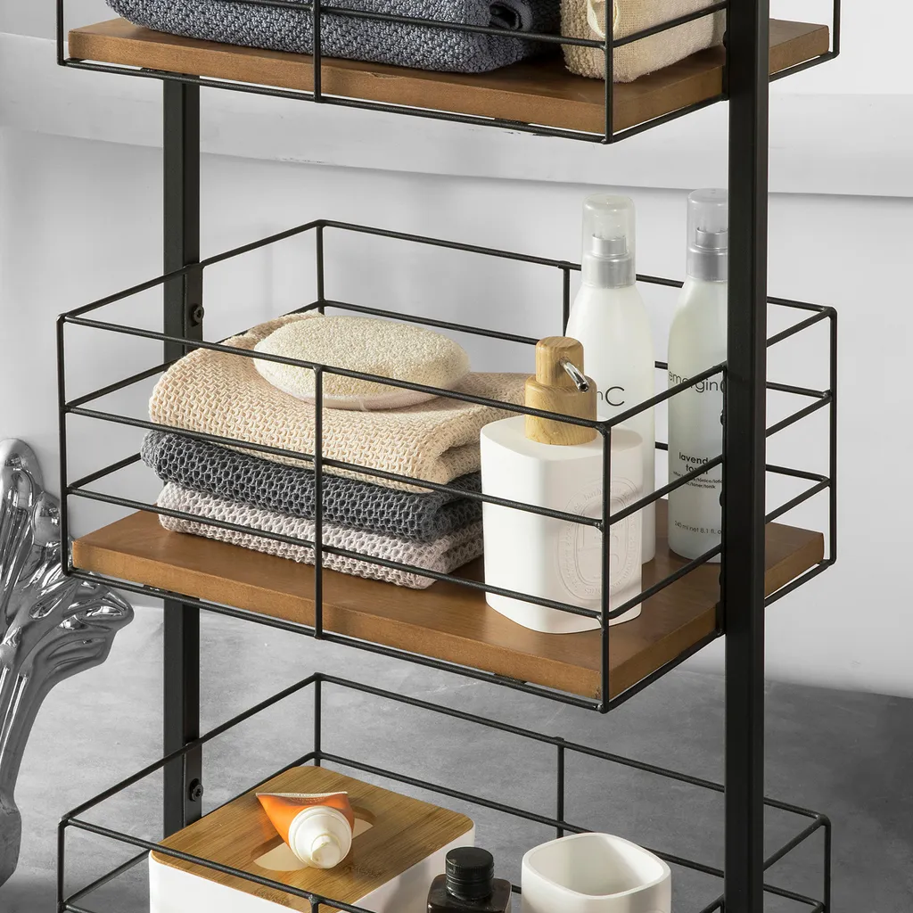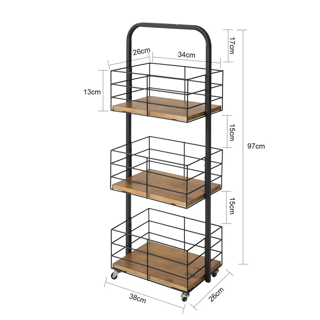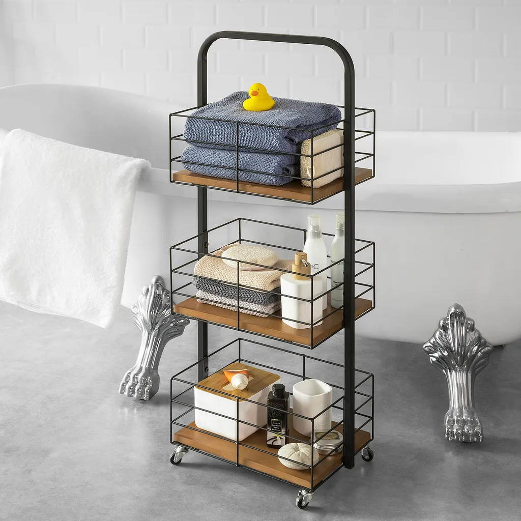 SoBuy NSR06-N Rollregal Mit 3 Körben Bad Wagen Badregal Küchenregal Rollbar Standregal Mit Griff Rollwagen Metall