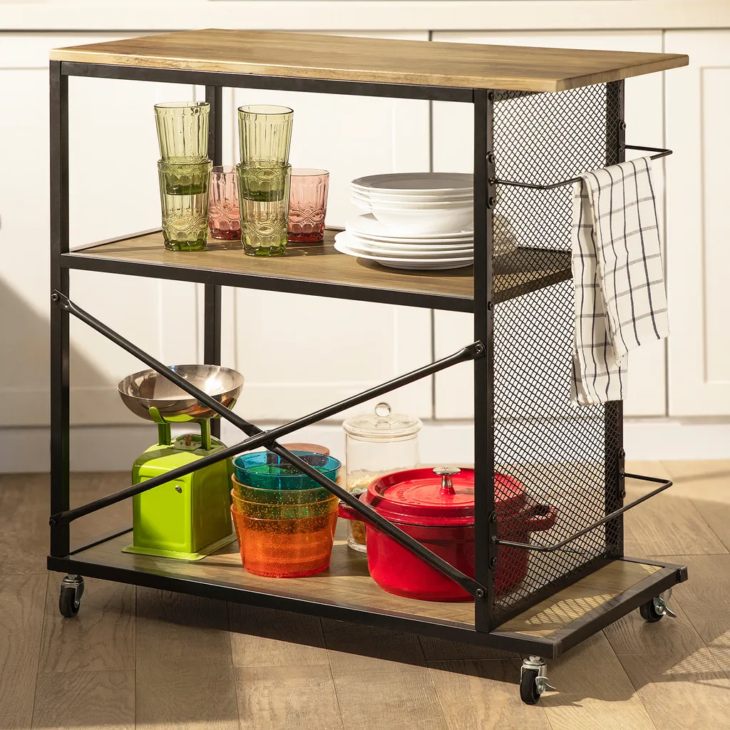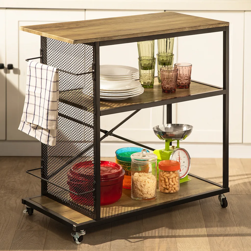 SoBuy SVW05-N Servierwagen Mit 3 Ebenen Beistellwagen Barwagen Küchenwagen Küchenregal Mit Rollen BHT Ca.: 80x80x40cm