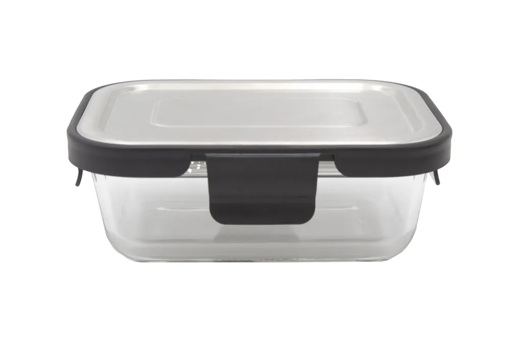 Steuber Glas Frischhaltedose 1500ml Mit Schwarzem Edelstahldeckel, Luftdichter Silikon-Klickdeckel, Backofengeeignet