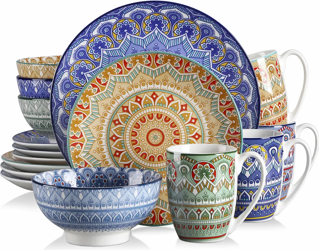 Vancasso Tafelservice Porzellan, Mandala 16 Teiliges Essgeschirr Kombiservice, Handbemaltes Geschirrset Für 4 Personen, Böhmischer Stil