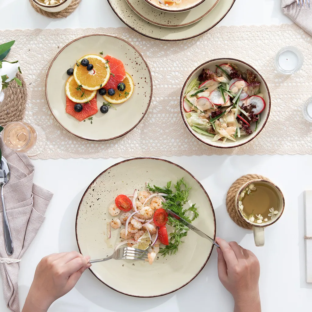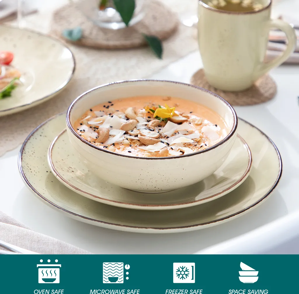 Vancasso Tafelservice Set, Navia Geschirrset Aus Steingut, 16 Teilig Kombiservice, Vintage Aussehen, Natur Design